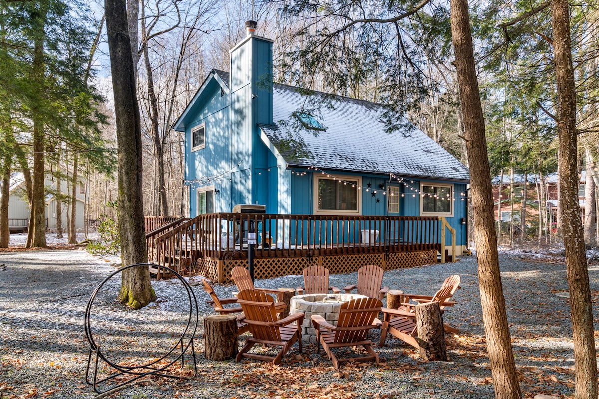 Winter is here! Located only 12 minutes to Jack Frost Ski Resort and 25 minutes to Camelback Mountain! After a day out on the slopes, stop by one of our favorite restaurants in our Winter Guidebook, then head back to Big Blue to cozy up by the fireplace. Throw on a classic movie, or bust open one of our many board games in our Game loft space! Pretend it's the 90's and put away the phones, unwind, reset, and spend that much needed quality time with your family and friends this winter.