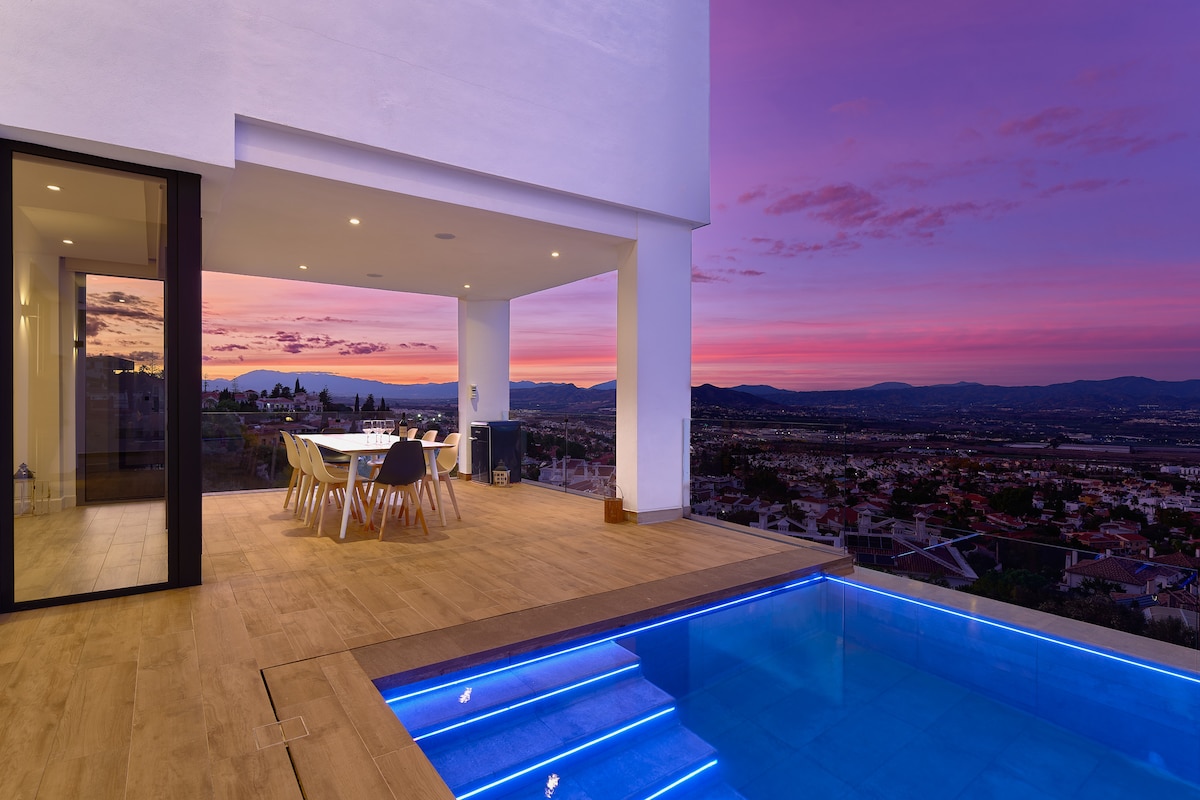 Lujo y modernidad se unen en esta espectacular casa de 5 dormitorios y 3 baños. Disfrute de interiores amplios, acabados de alta gama y una piscina privada con vistas panorámicas insuperables a Malaga. Perfecta para un retiro premium. A 15-25 min de playas, aeropuerto y Málaga. ¡Máximo confort y diseño!