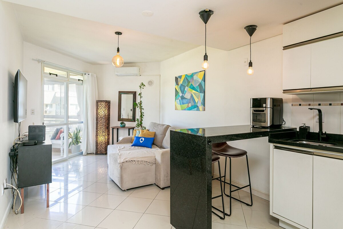 스튜디오가 재건되었습니다! 이 프로젝트는 새롭고 귀엽고 기능적인 숙소를 만들기 위해 최선을 다했습니다. 라고아 중심지와 가깝고, 녹음이 우거진 수영장, 어린이 놀이터, 바베큐(유료), 게임룸, 미니 마켓, 라고아 이용, 카약 및 자전거 대여 투어/업무에 이상적입니다. 매우 조용하고, 전략적으로 위치가 좋으며, 해변에 쉽게 접근할 수 있습니다. 빠르고 안정적인 인터넷. 반려동물은 환영합니다(콘도미니엄은 R$50를 부과합니다. (에어비앤비 또는 프런트 데스크에서 결제)