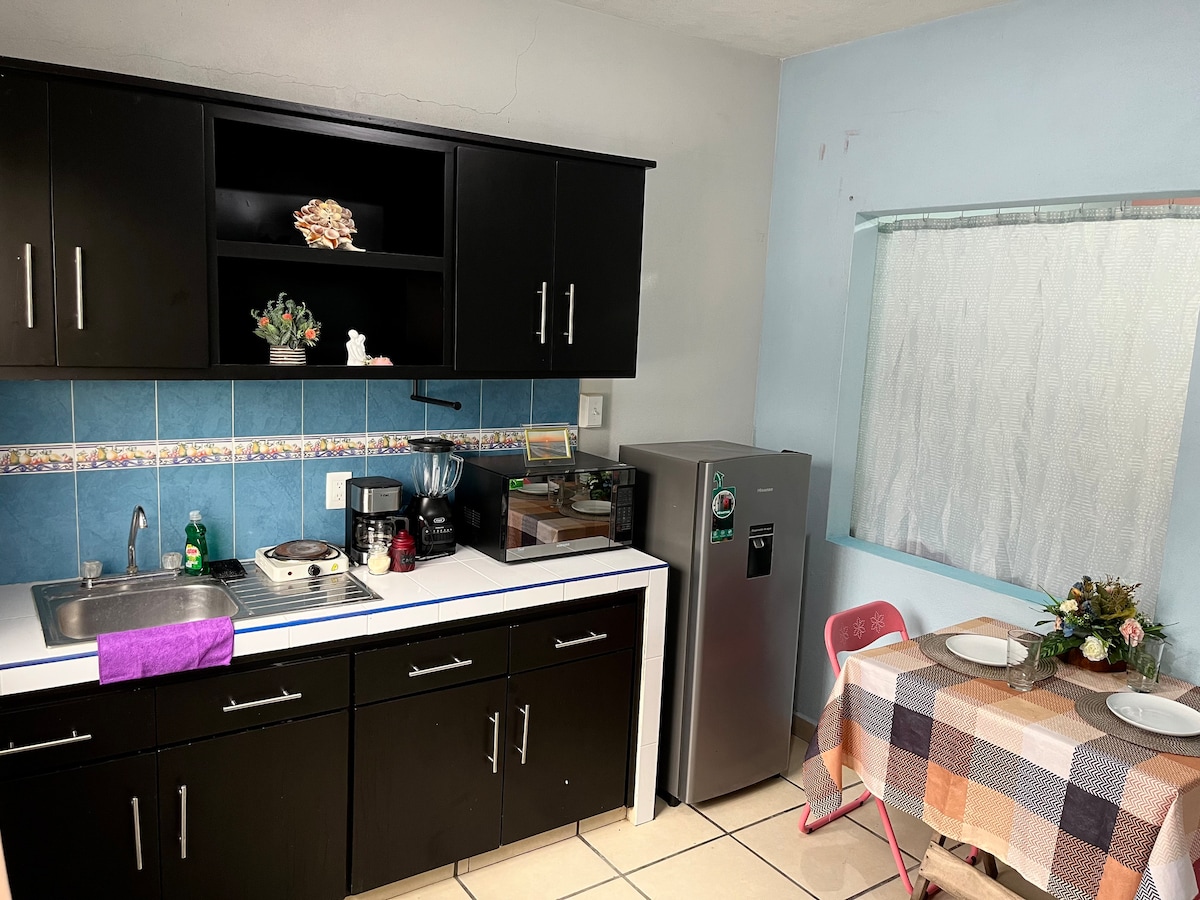3~4인에게 이상적인 킹사이즈 침대가 있는 아파트. 4번째 게스트를 위해 해먹을 추가로 제공합니다. TV, 디즈니+, 넷플릭스, HBO Max, 유튜브 등, 에어컨, 냉장고, 커피 메이커, 주방용품이 완비된 편안하고 개인적인 숙소입니다. 차량용 공간에 보안 카메라가 설치되어 있으며, 전기차 충전기는 추가 비용이 듭니다. 마찬가지로, 한 곳에서 다른 곳으로 전기 스쿠터를 타고 이동하고 싶을 경우 샤오미 전기 스쿠터를 대여할 수 있습니다.