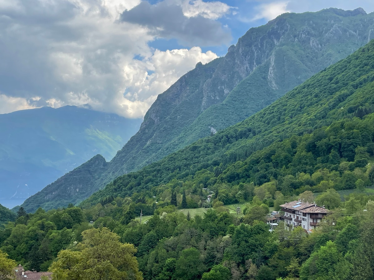 Casa di montagna a 600m di altitudine, immersa tra castagni e faggi. Distante 6km da Arco, nelle vicinanze del Lago di Garda, ideale per una vacanza rilassante e home working, per gli amanti del trekking, MTB, arrampicata e passeggiate nella natura. Dotata di tutti i confort abitativi, dispone di ampio giardino recintato (300 mq), parcheggi auto privati e zona relax esterna per trascorrere serate in compagnia. Gli animali sono i benvenuti. Internet satellitare velocità 200/250 mb/s.