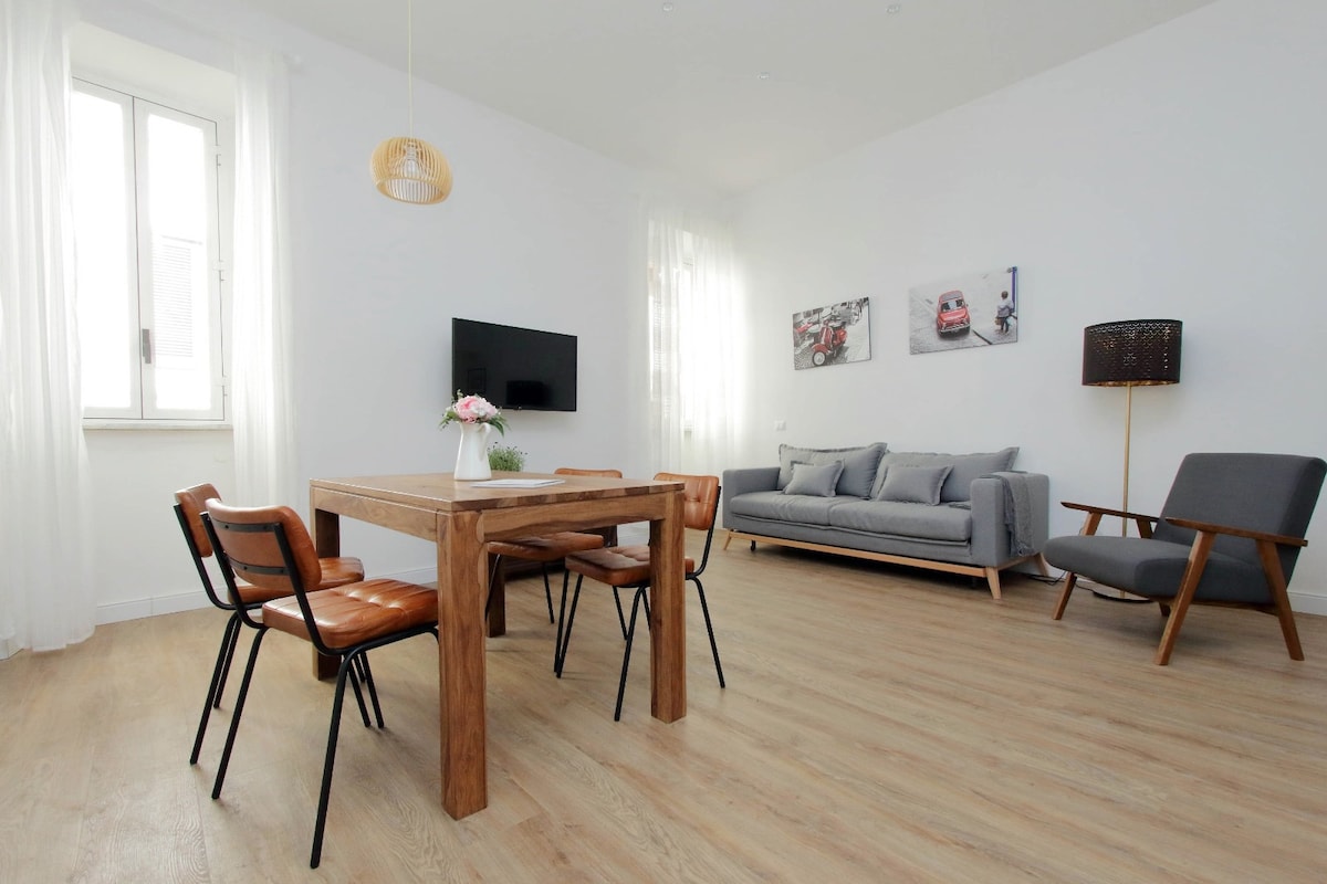 Charming and welcoming apartment, furnished in an elegant and traditional style, spacious and full of light, from which you can enjoy a wonderful view of Rome. It is located in the city center, on the top floor of an ancient Ghetto building, a few meters from Piazza Venezia, Largo di Torre Argentina, Campo de' Fiori. Thanks to its location and all the advice I can give you, in just a few steps you will find the great beauty, culture and life of Rome.