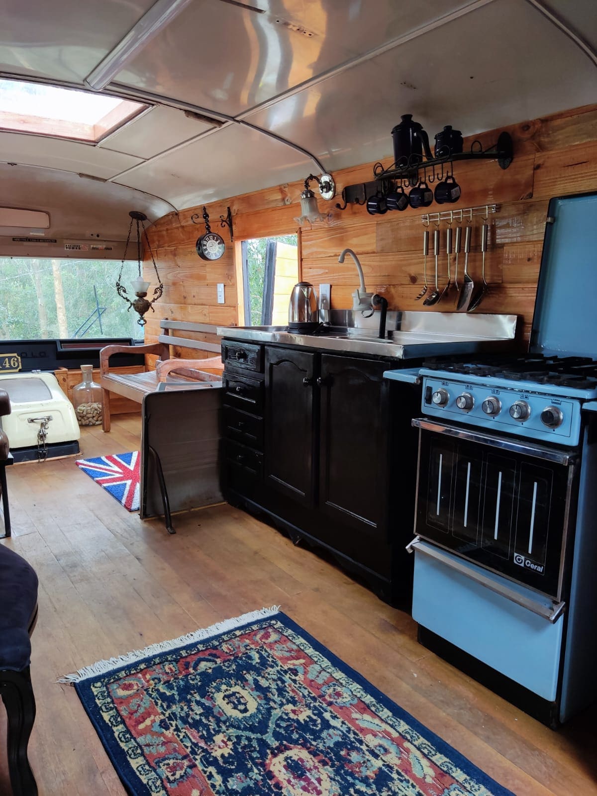 아메리칸 버스 글램핑 소개 - 카핀잘/SC. 스쿨버스를 개조한 이 오두막은 편안함과 모험을 동시에 즐길 수 있는 곳으로, 온수 수영장, 온수 욕조, 화덕, 평화로운 강이 있습니다. 폭포로 이어지는 산책로를 즐기고, 완비된 주방에서 직접 요리하거나 파트너가 준비한 가정식도 즐겨보세요. 휴식을 취하고 잊지 못할 순간을 즐길 수 있는 완벽한 휴양지!