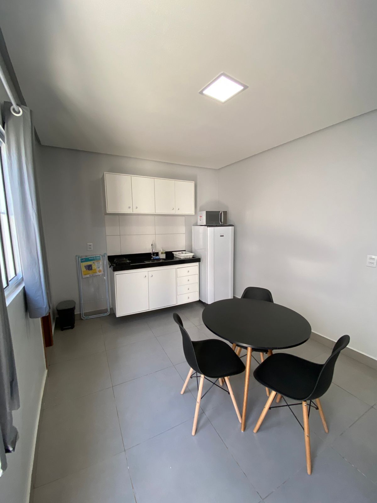 Studio termo acústico muito aconchegante Equipado com: Armário e cabideiro Cama 🛌 box casal Smat tv Frigobar Microondas Ar-condicionado Localizado no centro da cidade Na rua atrás do open mall e academia studio Y select.