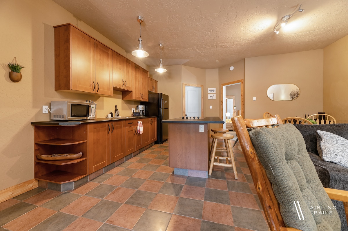 ★ 하이킹을 위한 무료 베어 스프레이 제공 ★ 멋지고 절충적인 디자인. 럭셔리와 현대, 자연과 현대적인 생활, 세련미와 단순함이 만나는 곳입니다. 편의시설: 실내 수영장, 온수 욕조, 어린이용 미끄럼틀, 헬스장 콘도의 편안함과 평온함을 만끽하세요. 새롭게 디자인된 거실, 킹사이즈 침대와 퀸사이즈 침대가 있는 침실 2개가 특징입니다. 전체 욕실 2개. 주방 시설 완비. 파티오. 에어컨, 와이파이, 케이블, 4K TV.