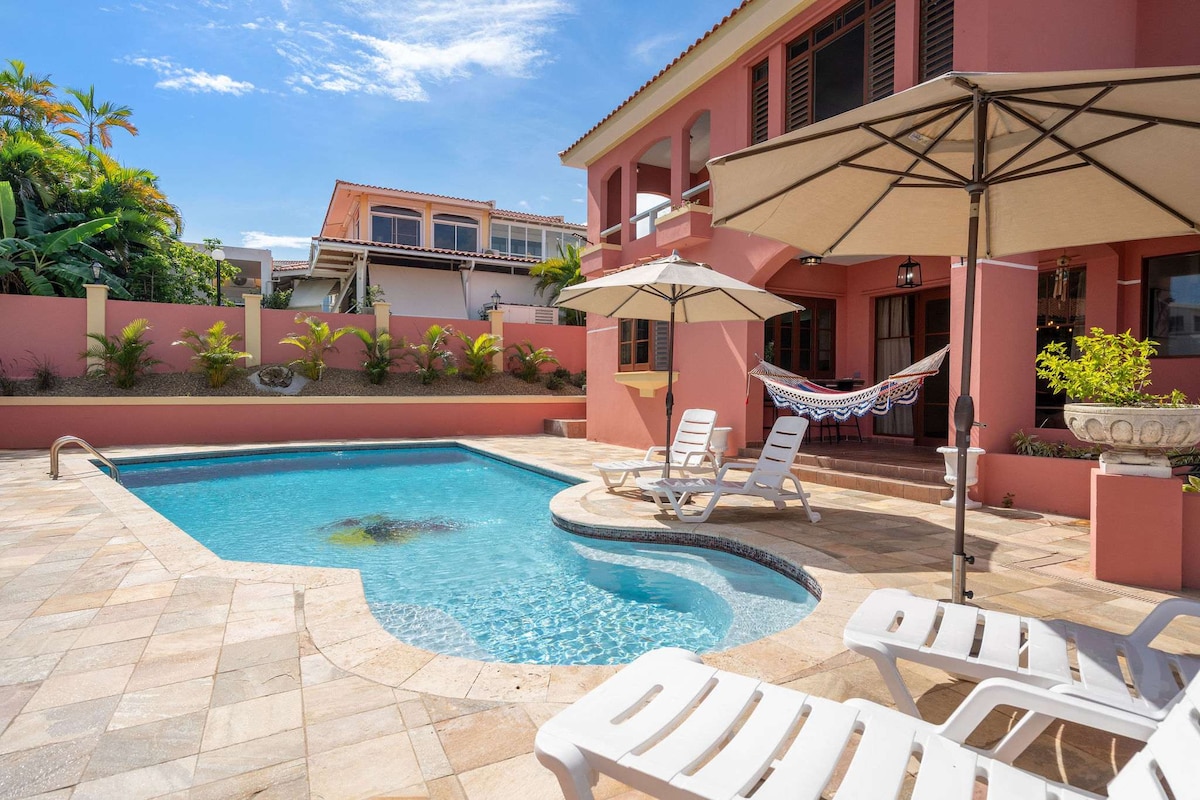 팔마스 델 마르의 리모델링된 넓고 독특한 숙소로 즐길 수 있는 모든 것을 갖추고 있습니다! 자연으로 둘러싸인 넓은 마당, 하프 농구 코트, 선 데크가 있는 커다란 수영장, 미니 골프, 시설이 잘 갖춰진 정자가 있습니다. 이 모든 것을 가족 전용으로 이용할 수 있으며 해변에서 도보로 단 10분 거리에 있습니다. 숙소 내 중앙 에어컨, 모든 침실에 에어컨. 숙소에는 백업 발전기도 있습니다. 산후안 공항에서 불과 50분 거리에 있는 이 파라다이스를 선택하세요.