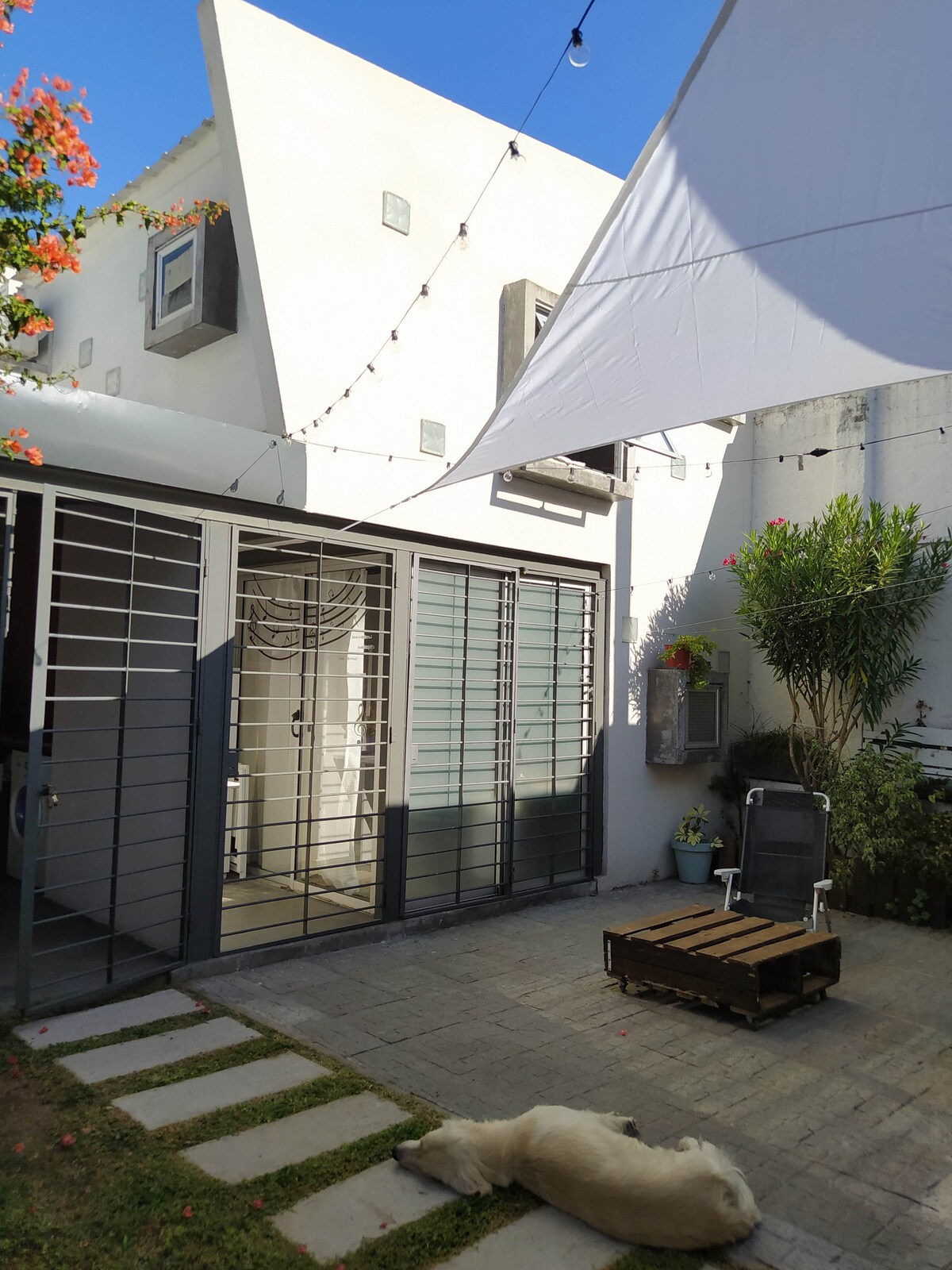Apto privado al fondo con entrada independiente a pasos del nuevo centro shopping, un buen punto para conectar con toda la ciudad. Está en el fondo compartido con mi casa, donde habita nuestra perra, Clara (una adorable Golden). En el entrepiso está el dormitorio con un sommier de 2 plazas y tv smart 32. Abajo se encuentra la sala con ventanales hacia el fondo y un baño completo. Hay una barbacoa techada contigua que se puede utilizar, con la opción de un área para cocinar.