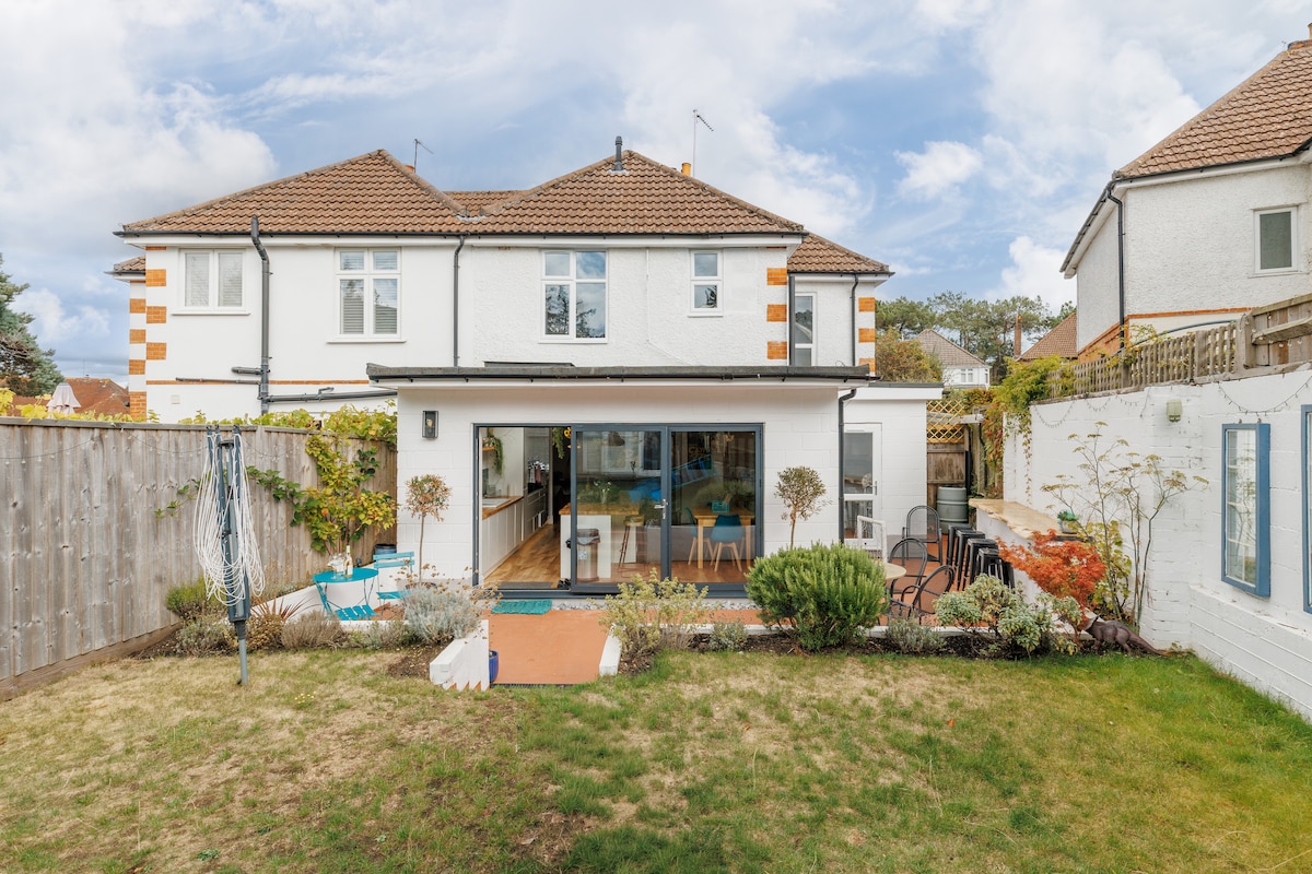 Luxury, family friendly apartment in an outstanding location with everything on your doorstep! On a quiet street in exclusive Canford Cliffs village, moments from top restaurants, bakery/deli, 2 gastropubs and Tesco Express. 5 min scenic woodland walk to stunning award winning Sandbanks beach and children's Pirate playground. Ideal luxury family holiday with the perfect location to park the car and enjoy the beach, watersports and entire holiday on foot. Free parking & no Airbnb cleaning fees!