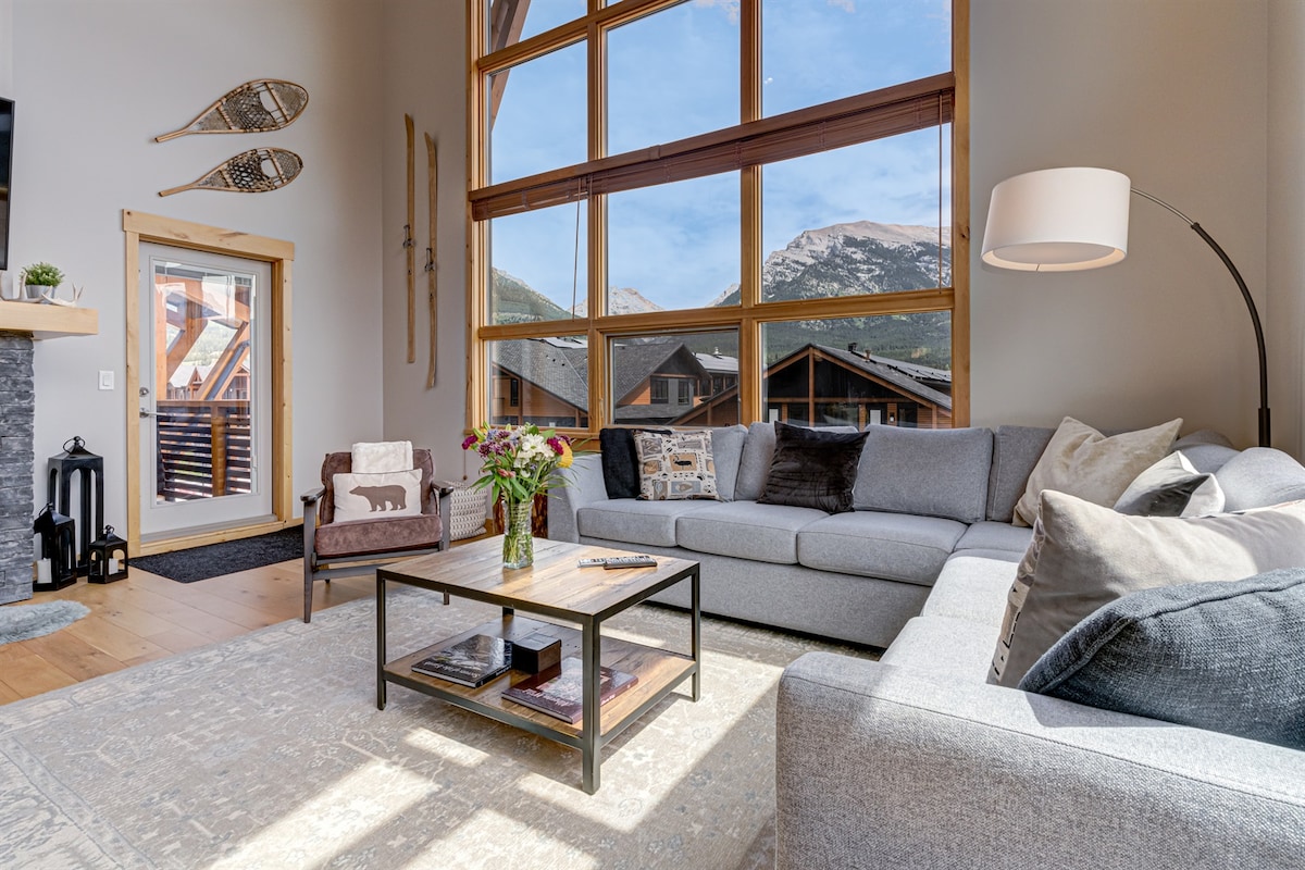 현대적인 산악 스타일, 아치형 천장 프리미엄 펜트하우스 콘도. 가스 바비큐가 있는 북향 발코니에서 볼 수 있는 웅장한 로키산맥과 개울 전망. 넓은 개방형 콘셉트 주방, 식사 공간 및 벽난로가 있는 거실. 각각 워크인 옷장, 좌석 공간, 킹사이즈 침대, TV가 있는 2개의 그랜드 마스터 침실. 시설이 완비된 고메 주방. 비대면 호스팅. 캔모어 시내까지 도보 5분. 무료 난방 지하 주차장, 주차 패스, 와이파이 및 케이블 TV. 온수 욕조.