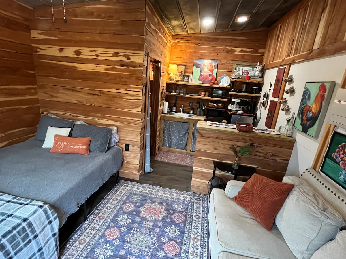 This cozy little cabin is the perfect get away for the family! It is nestled back in the woods in a quiet remote area . Here are some special things about our place! - Private entry - Historic Area - Living room is a Pre Civil War Log Cabin - Back patio with grill and fire pit - 30 minutes from downtown Murfreesboro - 20 minutes from Amish Farms and a wonderful country store : Four Corners Bulk Food and Deli