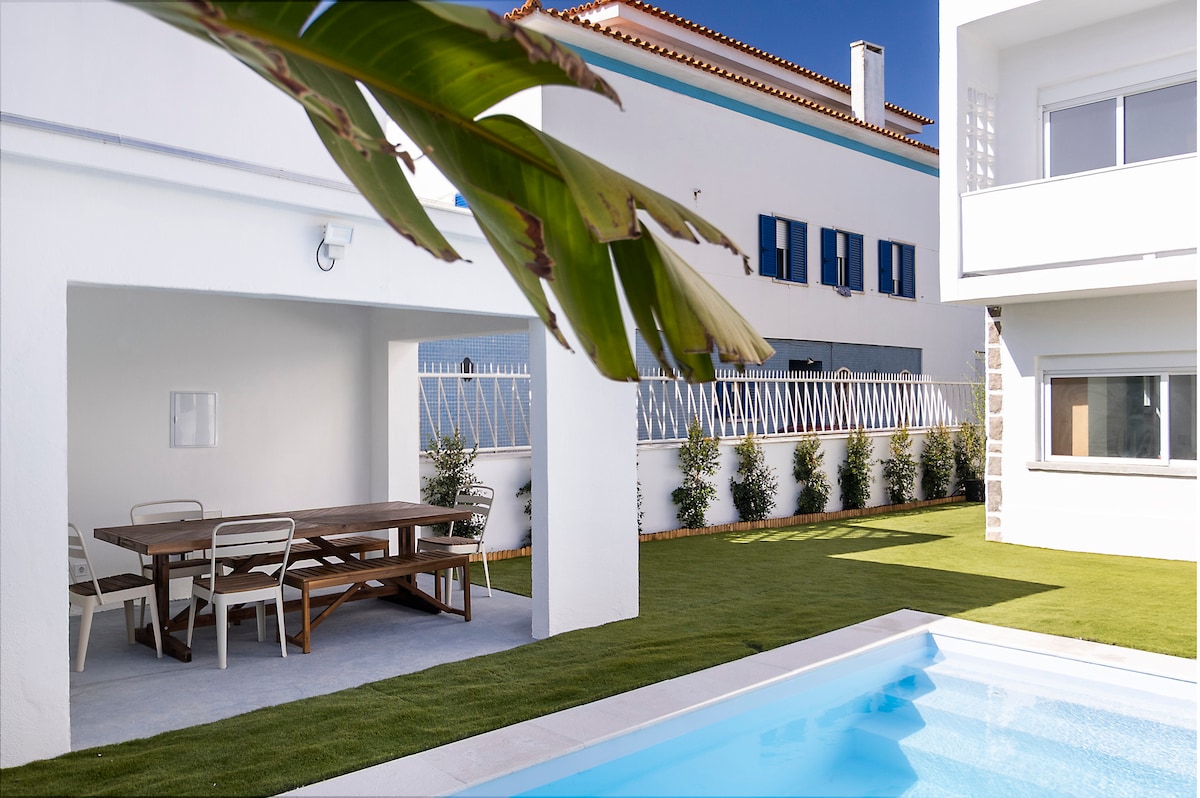빌라, 아파트, 전용 수영장 & 이벤트룸/웰니스 스튜디오! (인기 서핑) 해변까지 7분! 리스본까지 15분! 소박한 분위기의 세련된 저택으로, 매력적인 포르투갈 휴양지입니다. 데크에서 석양을 즐겨보세요. 밀폐된 온수풀에서 수영을 즐겨보세요. 세련된 라운지에서 휴식을 취해보세요. 매력적인 바나 12인용 테이블에서 사교 활동을 즐겨보세요. 시설이 잘 갖춰진 주방에서 요리해보세요. 야외 그릴이나 장작 오븐에서 실력을 테스트해보세요. 그런 다음 하룻밤 동안 킹사이즈 침대 중 하나에 몸을 담그세요.