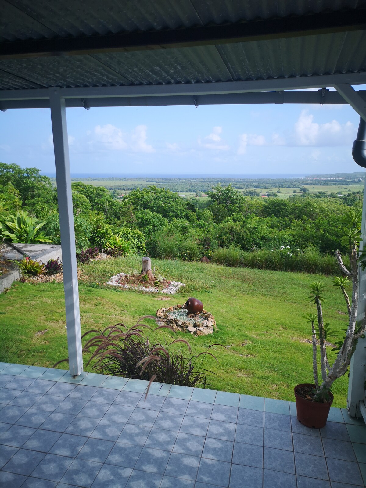 세인트루이스만과 주변 섬의 아름다운 파노라마 전망을 자랑하는 마리 갈란테 섬의 마을에서 5km 거리에 위치한 6명을 수용할 수 있는 작은 집입니다. 더블 침대가 있는 에어컨이 설치된 침실 2개, 와이파이 연결, 욕실, 소파 베드가 있는 거실, 미국식 바가 구비된 주방, 테라스, 조용한 지역에 정원이 있습니다.