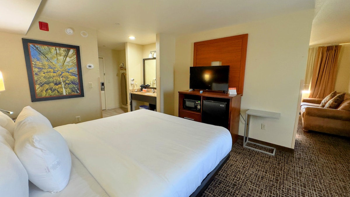이 고급스러운 킹룸은 거동이 불편하고 청각 장애가 있는 개인이 이용할 수 있는 ADA입니다. 저희 호텔에 대해 배우거나 예약하는 데 어려움이 있으시면 전화나 westcliffinn @ foursisters. com으로 즉시 연락주시면 친절한 게스트 서비스 팀이 기꺼이 도와드리겠습니다. ADA에 접근할 수 있는 게스트룸이 이미 온라인에서 예약된 것으로 보이는 경우, 전화로 문의하세요.
