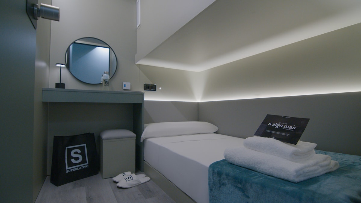 ADULTS RECOMMENDED - Double rooms, 18 sq. meters approximately. It features south facing terraces with a table and chairs. Two beds, with a top-quality Flex mattress of 100cm x 200cm, as well as the linen of the room, to offer you a comfortable rest. 55 television with national and international channels. Touch screens to control the 100% LED lighting.