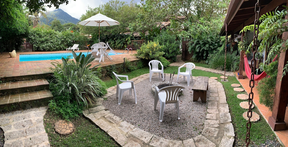 이 독특하고 조용하고 아늑한 장소에서 휴식을 취하십시오. 풍부한 자연, 다양한 식물, 반려동물을 위한 훌륭한 잔디를 갖춘 숙소. 잊을 수 없는 숙박을 위해 필요한 모든 것이 갖춰져 있습니다! 완비된 주방, 3 개의 스위트룸에 에어컨, 소파, 테이블 및 의자가 있는 넓은 야외 공간, 바, 바비큐 그릴 및 피자 오븐. 이 집에는 상쾌한 물이 있는 아름다운 천연 수영장도 있습니다! 초고속 인터넷이 설치된 와이파이 및 SKY TV를 이용하실 수 있습니다.