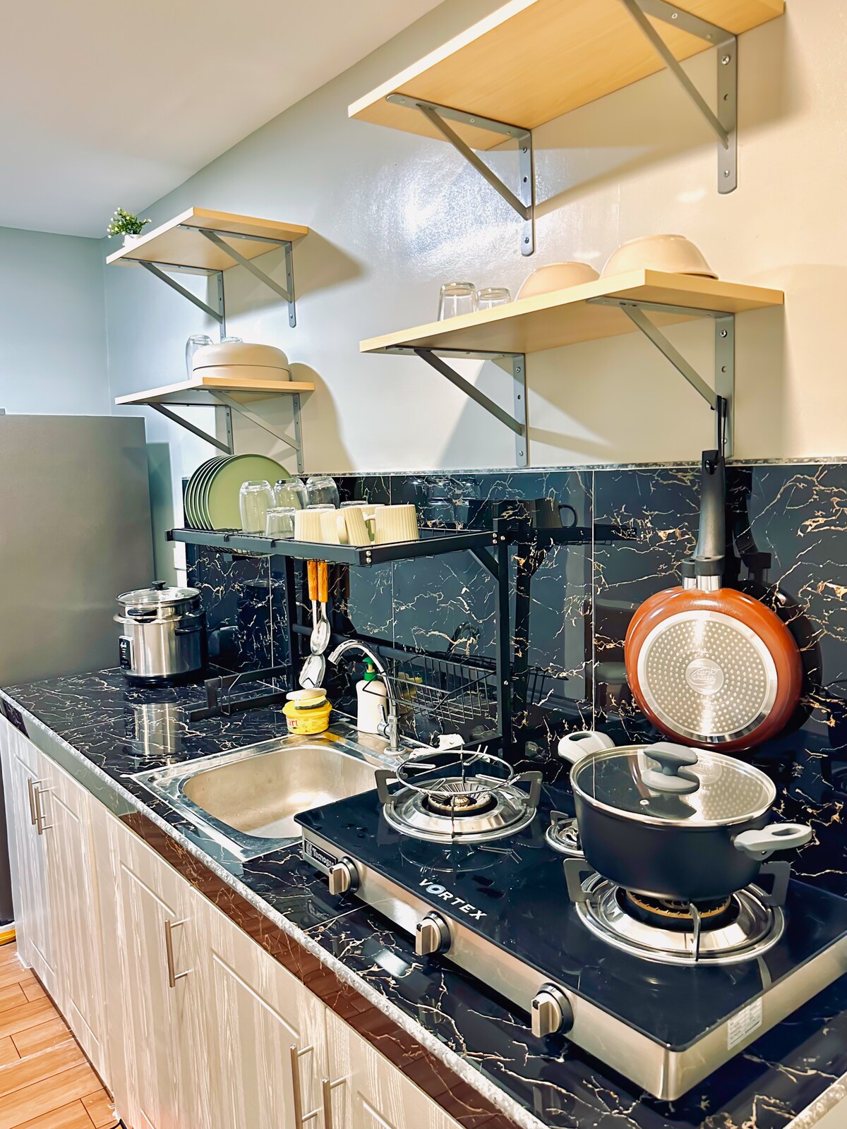 넷플릭스와 휴식. 보드게임과 휴식. 가라오케와 휴식! 편안한 숙박에 필요한 것은 이 귀여운 공간에 있습니다! 침대, 소파, TV, 냉장고, 에어컨, 인덕션 쿠커, 벽 선풍기, 서랍, 주방용품과 식기류까지 완비되어 있습니다! 스테이케이션에 안성맞춤입니다!