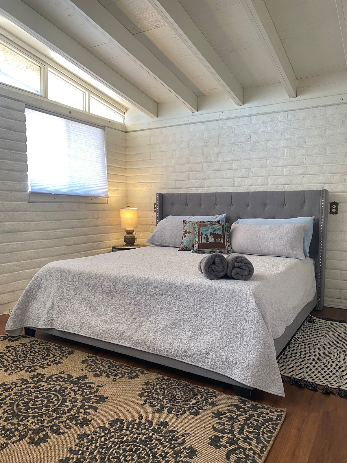 침실 2개와 욕실 1.5개가 있는 이 숙소는 실망하지 않을 것입니다! 주방에는 인덕션 레인지, 식기 세척기, 고급 식사를 조리할 수 있는 모든 편의시설이 갖춰져 있습니다. 마스터 침실에는 편안한 킹사이즈 침대와 독서 공간이 마련되어 있습니다. 게스트 룸에는 편안한 퀸사이즈 침대, 사무 공간, 하프 욕실이 있습니다. 앤티크와 독창적인 예술 작품의 절충 컬렉션은 이 공간을 진정으로 기억에 남는 경험으로 만듭니다. 뒤쪽 파티오는 프라이빗하고 한적합니다.