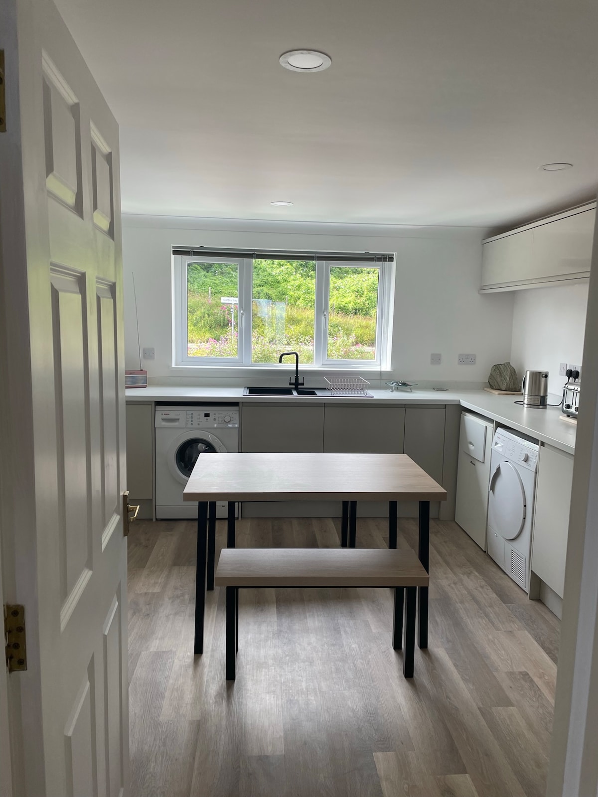 따뜻한 환영 인사 최대 5명까지 숙박할 수 있는 밝고 넓은 1층 2베드룸 아파트, 풀사이즈 이층 침대가 있는 침실 1개, 킹사이즈 침대가 있는 초대형 침실 1개, 5인용 싱글 풀 사이즈 침대를 추가할 수 있으며, 여행용 간이침대도 마련되어 있습니다. 가족, 커플 및 계약자에게 이상적입니다. 해일 항구 맞은편에 위치해 있으며 해변, 현지 상점, 레스토랑, 카페, 슈퍼마켓, 수영장이 근처에 있습니다. 조류 관찰자에게 인기 있는 하구