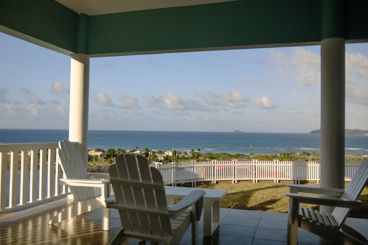 The villa is located in unspoiled Carriacou, the most southern isle of the Grenadines Archipelago. Nestled in a half-acre lush garden, it is mere steps from a secluded beach where a coral reef lines a natural sandy cove. The cove is home to many tropical fish and lobster, making it ideal for swimming, snorkelling, kayaking and fishing. Our home is made for relaxation and wonder. Wide verandahs surround the entire villa offering up spectacular views of the Caribbean Sea and the tropical gardens.