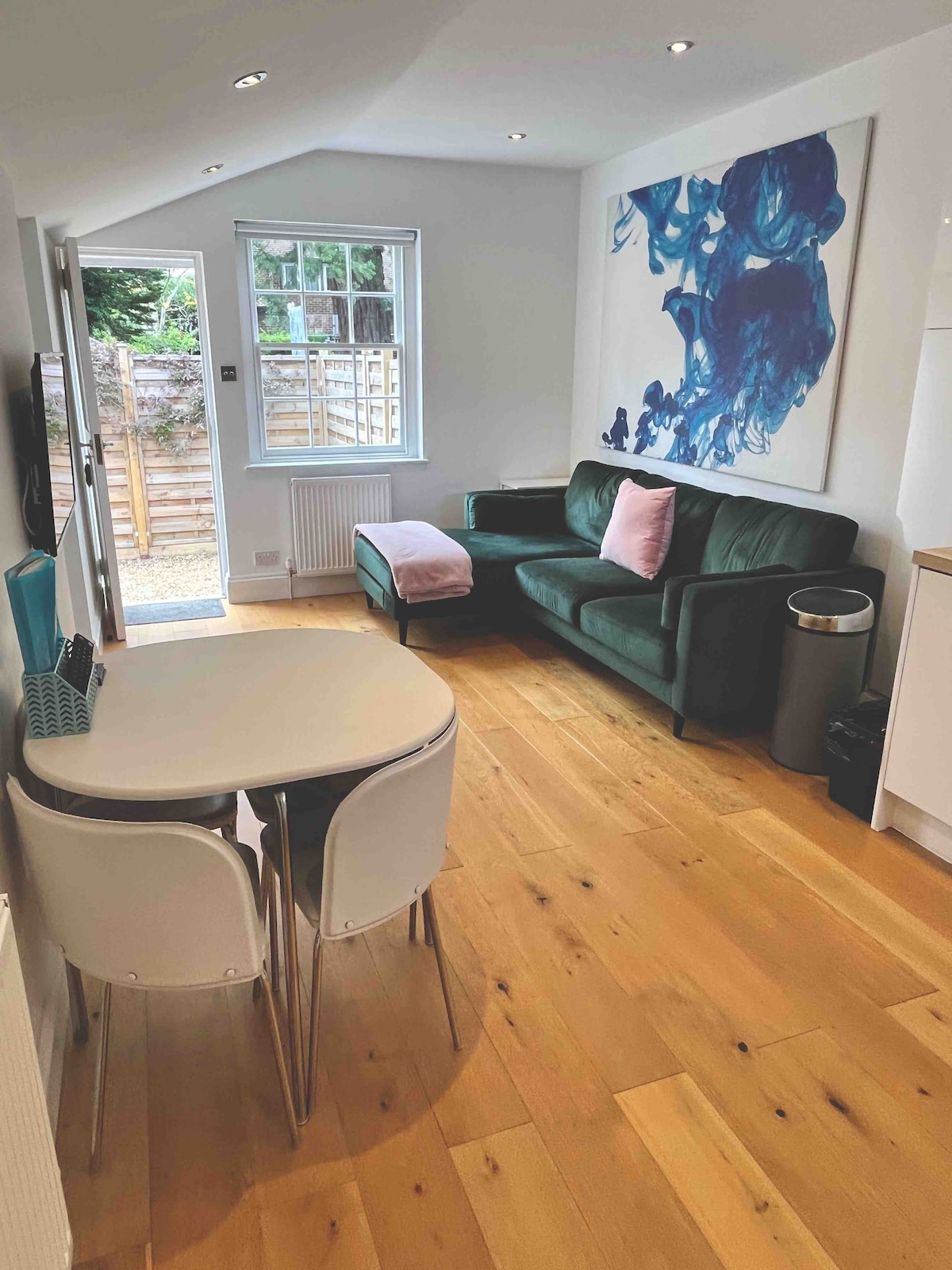 Nestled walking distance from Esher High Street the apartment is situated across the courtyard of Clive House, a Georgian dwelling built in the middle of the eighteenth century by Clive of India. The newly refurbished accommodation includes : living area, kitchen/ diner and ensuite double bedroom with a kingsize bed. Living includes a new compact and bijou fully fitted kitchen, dining area with wood burner, luxurious sofa and Smart HD TV/ Sonos sound bar as well as complimentary WiFi.