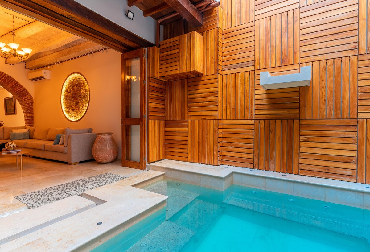 샌디에이고의 트렌디한 동네에 위치한 카르타헤나의 센트로 히스토리코에 위치한 세련된 독특한 숙소입니다. 낭만적인 은신처를 위한 멋진 숙소입니다. 이 숙소는 상쾌한 전용 수영장, 일몰 칵테일을 즐기기에 완벽한 작은 옥상 테라스, 필요한 경우 에어컨, 5명의 게스트를 맞이할 수 있는 옵션을 제공합니다. 훌륭한 바와 레스토랑 바로 옆에 위치한 이 세련된 콜롬비아 숙소는 훌륭한 디테일, 높은 천장, 나무 대들보, 앤티크 욕조, 고급 편의시설로 가득합니다.