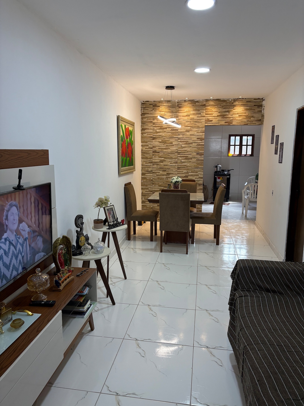 침실 3개, 욕실 2개, 커다란 방 1개가 있는 가족 동네에 새로 리모델링한 대형 주택입니다. 저희는 6명이 침대에 머물렀고, 요청 시 매트리스와 2명을 수용했습니다. 더블 침대가 있는 침실 2개, 스위트 1개, 트윈 침실 1개가 있습니다. 모두 선풍기 또는 에어컨이 있습니다. Casa Á 루이즈 곤자가 이벤트 마당에서 5분 거리. 숙소 옆에는 바, 레스토랑, 약국, 시장, 피자집, 보건소, 주유소 등이 있습니다 (모두 도보).