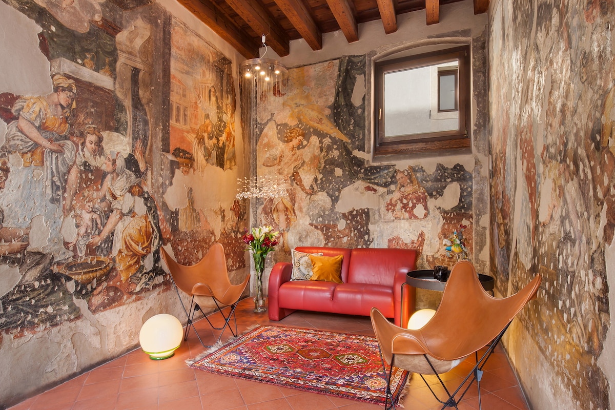 웅장한 아레나 극장 바로 옆에 위치한 독특하고 고급스러운 아파트에서 일생일대의 숙박을 즐기세요. 베로나의 가장 유명한 장소와 감각적인 레스토랑이 가까운 거리에 있으며, 도심이 바로 아래에 있습니다. 로맨틱한 저녁 식사를 즐길 수 있는 테라스가 내려다보이는 전용 자쿠지*에서 편안한 목욕을 즐기세요. *자쿠지는 23시까지입니다. 23시 이후에도 게스트는 오랫동안 로맨틱한 목욕을 즐길 수 있습니다.