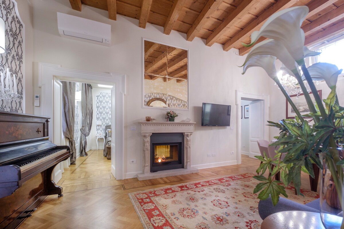 Attic in the Historic City Center – Steps from Verona Arena. Stay in the heart of Verona’s historic center, close to the main cultural attractions. This two-level apartment features a spacious master bedroom with a king-size bed and high-quality topper, along with a stylish bathroom with luxury toiletries.Upstairs, enjoy a bright open-space area with a fully equipped kitchen and elegant lounge.