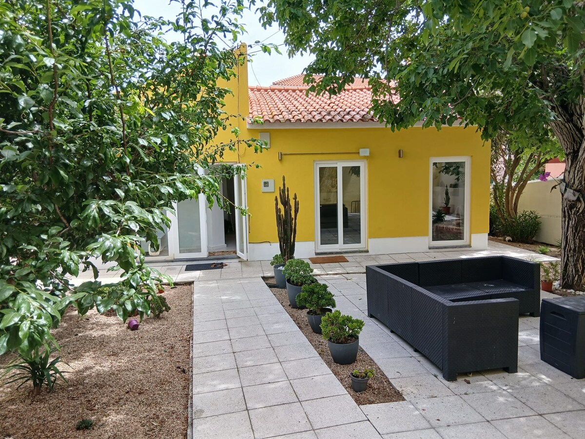 Casa de 2 dormitórios em Cascais, com decoração moderna e ambiente confortável. Dispõe de jardim privativo e amplo, garagem box com controle remoto, Wi-Fi rápido, cozinha completa e ar-condicionado quente e frio nos quartos, garantindo conforto em todas as estações. Localizada a cerca de 1,2 km da Praia da Conceição, estação de comboio, comércio e serviços. Bairro tranquilo, ideal para descansar ou trabalhar remotamente. Pet friendly.