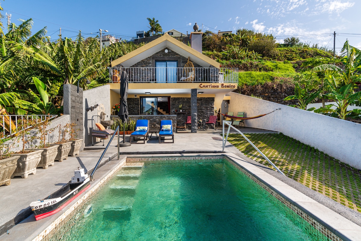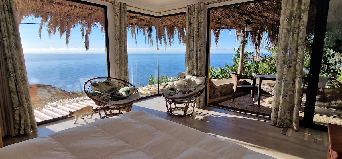 This magnificent, modern, private villa Miradouro da Baleia (Whale Watchtower) has some of the best ocean and mountains views on the island, with a infinity pool and located in a premium spot surrounded by spectacular cliffs, cropland, banana plantations and vineyards, it was carefully & tastefully restored/built in 2018 offering a unique experience of a Portuguese summer style accommodation!