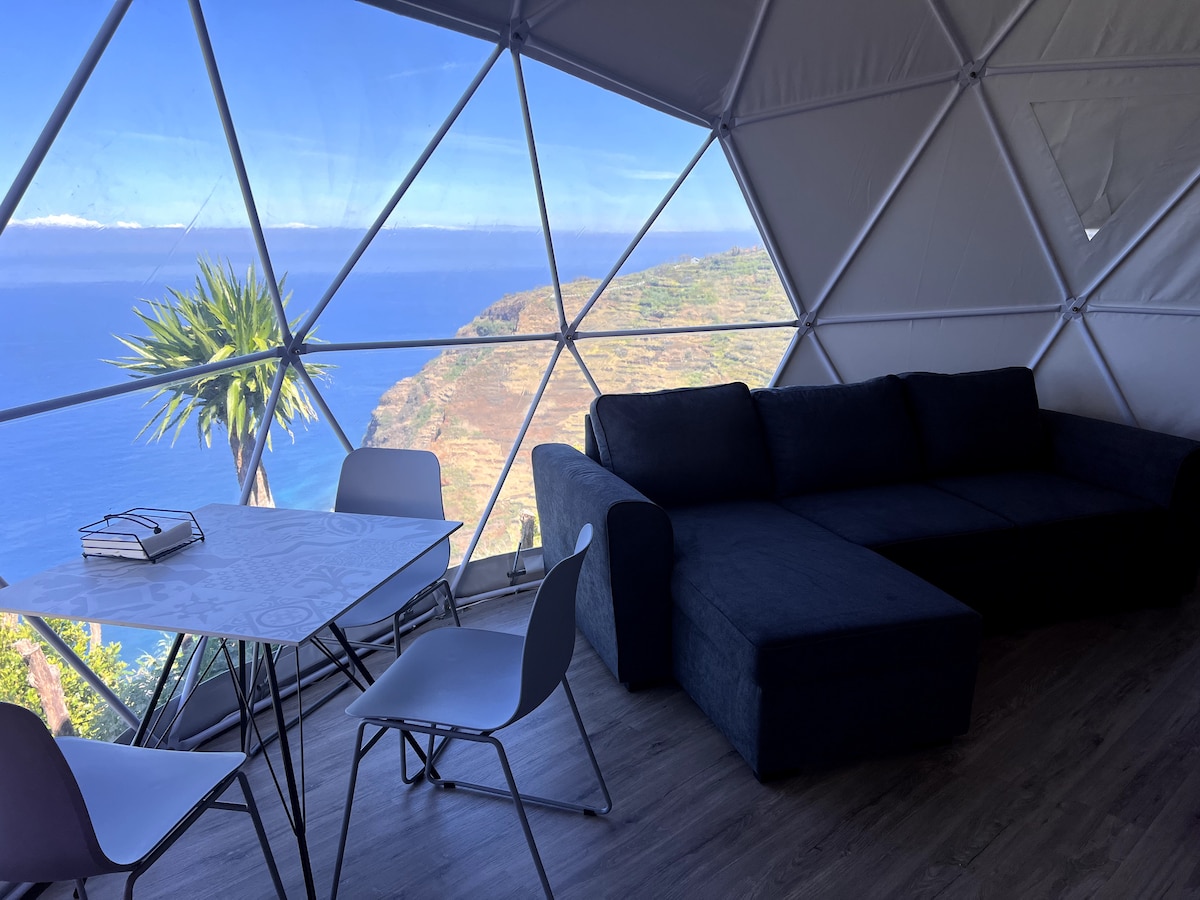 Located in the north-western part of the island ,its an amazing location protected by conservation laws that have kept the area free of over development. With epic mountain and sea-views (the photos don't do it justice) the tents are located 450m above the coastline. If a place to relax and unwind is what you after then this would be the place to come to. There are also some amazing levada walks to explore in the area.There are three tents on the property so you might neighbours.