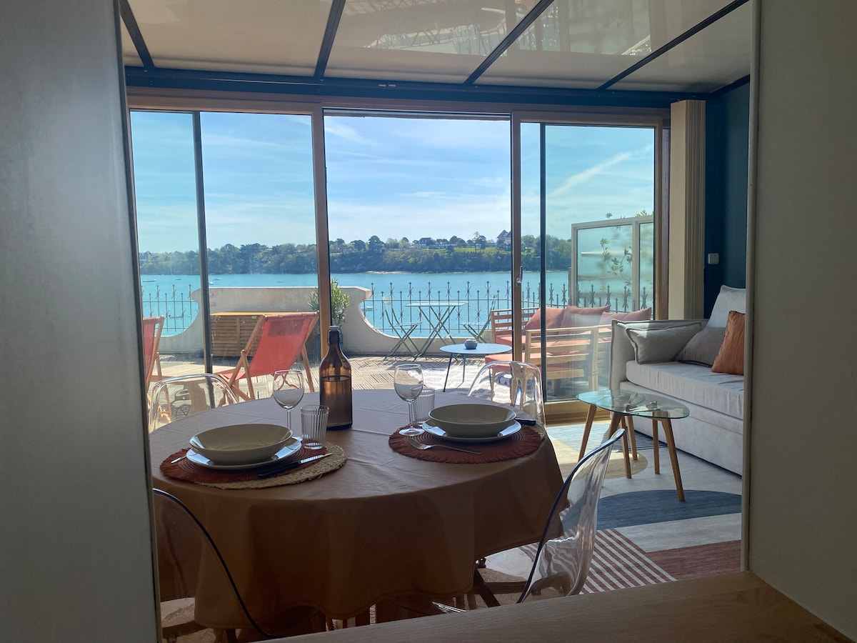 Vous rêvez de Vacances sans voiture... Tout à pieds. Joli 3 pièces de 54 M2 idéalement situé. En plein cœur du centre ville de DINARD, 1 route à traverser et vous êtes sur la plage de l écluse. L appartement est décoré ambiance bords de mer, il est douillet et bien équipé avec certains meubles et objets chinés pour une déco éco responsable. Son +, il dispose d un balcon vue mer, ou l on peut déjeuner pleine vue mer.