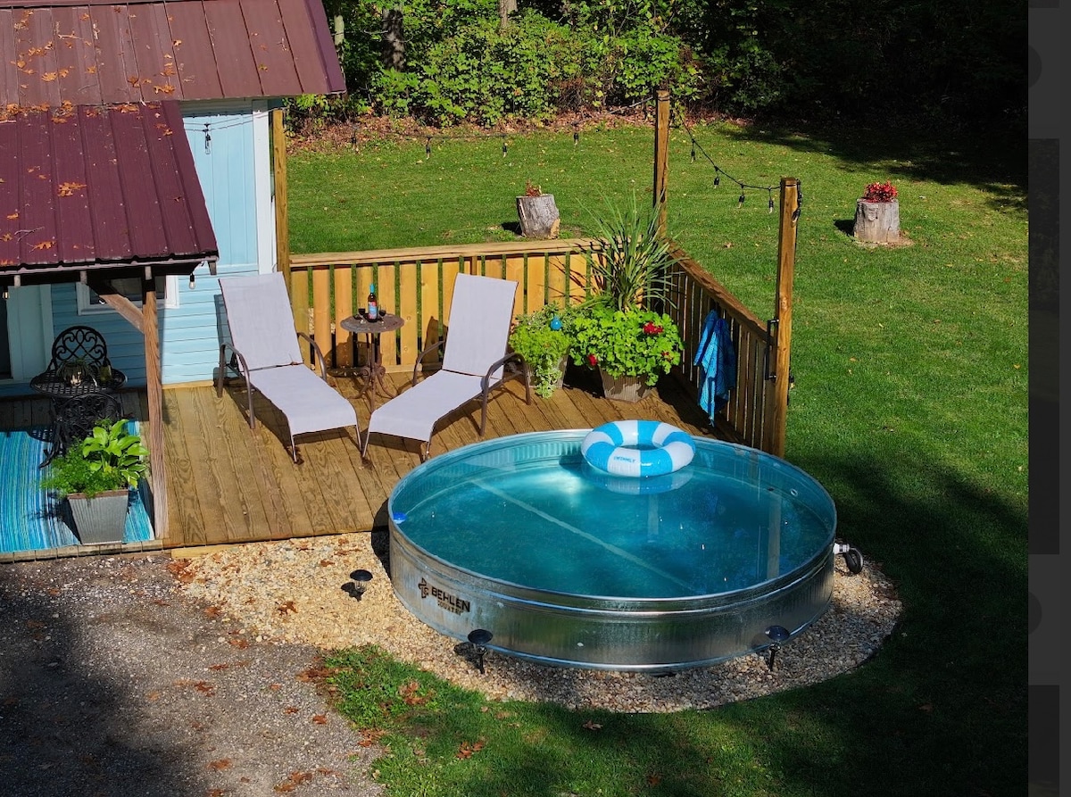 평화와 연결이 만나는 크리크사이드 전용 휴양지로 떠나보세요. 낭만과 편안함을 추구하는 커플에게 적합합니다. 이 아늑한 휴양지는 조용한 순간과 자연의 잔잔한 소리를 제공합니다. 아름답고 한적한 환경에 있습니다. 별이 가득한 하늘 아래 온수 욕조에서 휴식을 취하고, 식사를 즐기고, 책을 읽고, 게임을 즐기며, 문 바로 바깥에 있는 새 먹이통에서 깃털 달린 친구들을 구경해보세요. 긴장을 풀고, 다시 연결하고, 주변의 시골 고독과 아름다움의 단순한 럭셔리를 경험하세요. 영혼의 휴식.