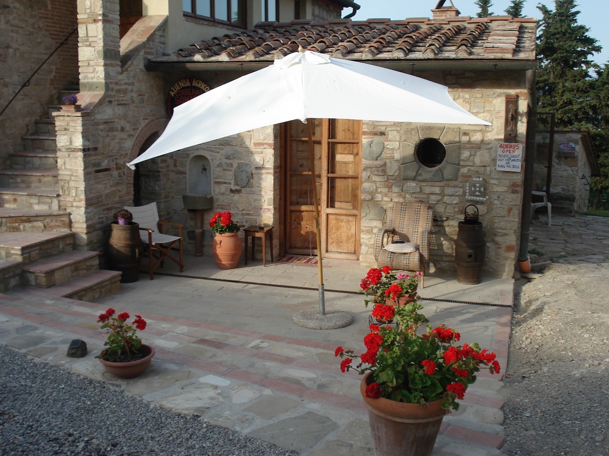 Situata nel cuore del Chianti Classico, sulle colline che circondano Greve. Arredata in un accogliente stile country, la sistemazione è dotata di tutto il necessario, biancheria, zanzariere alla finestre, wifi e aria condizionata. L'agriturismo, recentemente ristrutturato ed un tempo utilizzato per conservare il fieno, costituisce oggi il luogo ideale per un soggiorno di coppia, ma anche per famiglie o amici. Gli oliveti ed i vigneti dell'azienda di famiglia circondano completamente il podere.