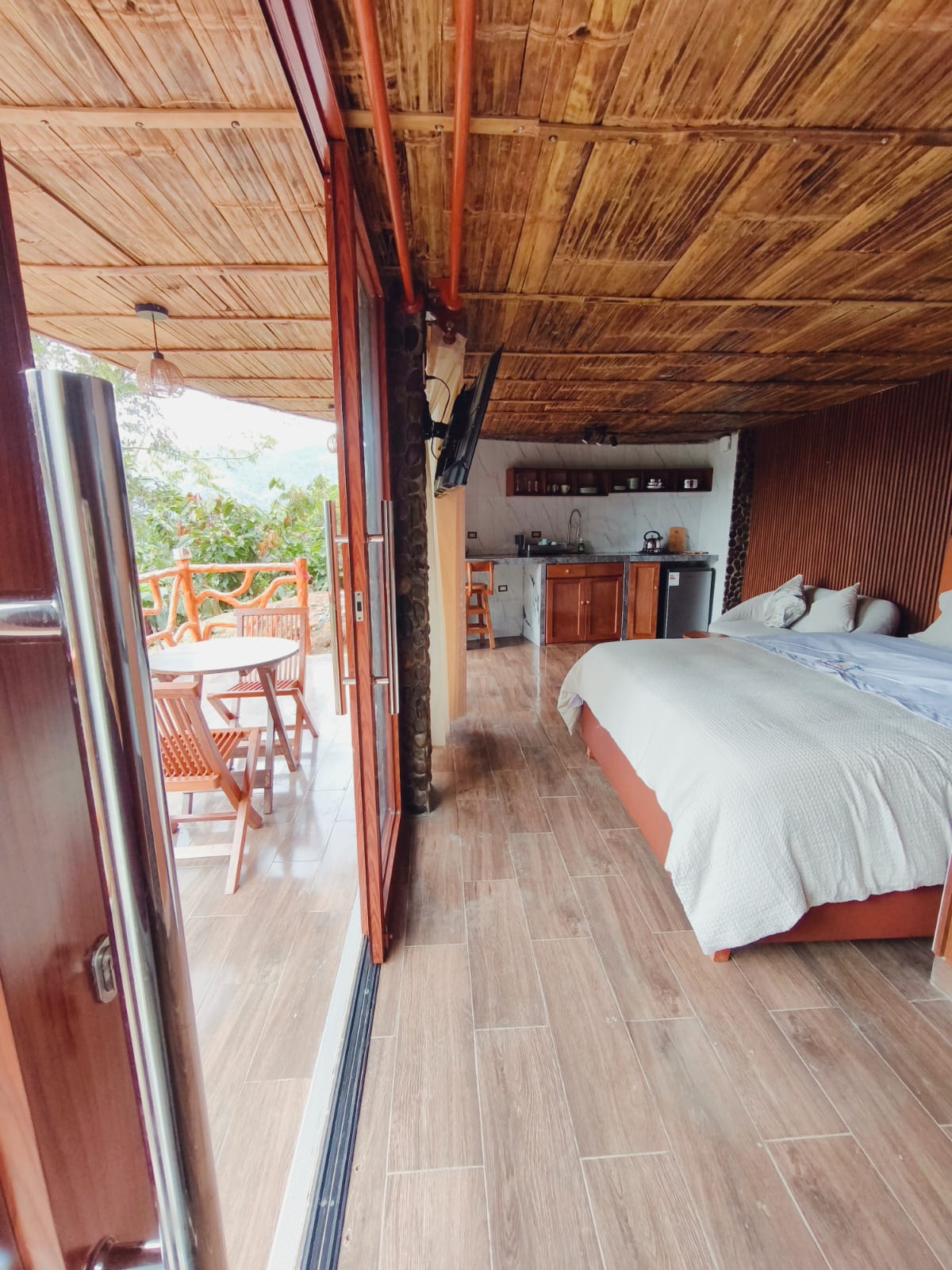 Cada detalle de nuestra cabaña,la hemos diseñado para ofrecerle una experiencia unica. Desde las estructuras de bambu hasta las piedras de rio que fueron pensados para que puedan conectar con la naturaleza. Podras disfrutar de la calidez de este alojamiento en medio de la selva y al mismo tiempo céntrico de la ciudad. Tambien puedes observar las aves que sobrevuelan la cabaña, conocer los arboles frutales que estan alrededor de nuestra casa de bambu.Y sobretodo descansar con el sonido del rio