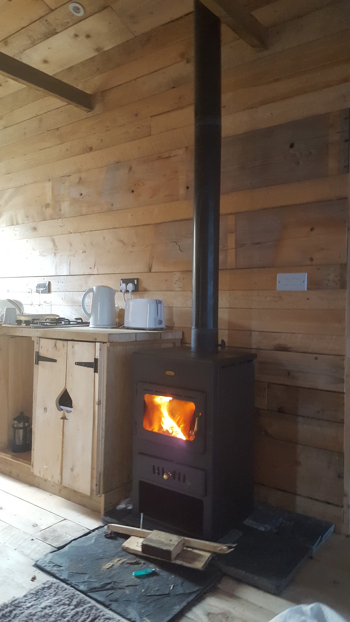 The hygge hut is our most popular timber lodge. A self contained unit on the threshold of the beaches at Freshwater West, Broad Haven, Bosherston lily ponds, Barafundle ,Stack Rocks ,the Green Bridge of Wales.80 per cent of the hut is made from recycled materials. Add to that the solar panels and you have quite an eco friendly option . Sleeps up to 4