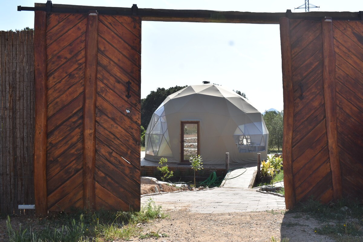 성인 전용. 와이파이 없음. 디지털 체크인. 최대의 프라이버시. 반려동물은 허용되지 않습니다. 100m2 테라스 위에 위치한 36m2 지오데식 돔, 전용 부지, 자연과 하나 되는 야외 샤워 시설. 캐노피 덕에 하늘을 보며 잠을 잘 수 있는 기분을 즐길 수 있습니다. 킹사이즈 침대가 있습니다. 또는 욕조에서 술을 마시거나, 야외 발리식 침대에 누워 자연의 소리를 즐길 수 있습니다. 홈메이드 타파스 디너와 풍성한 아침 식사가 포함되어 있습니다.