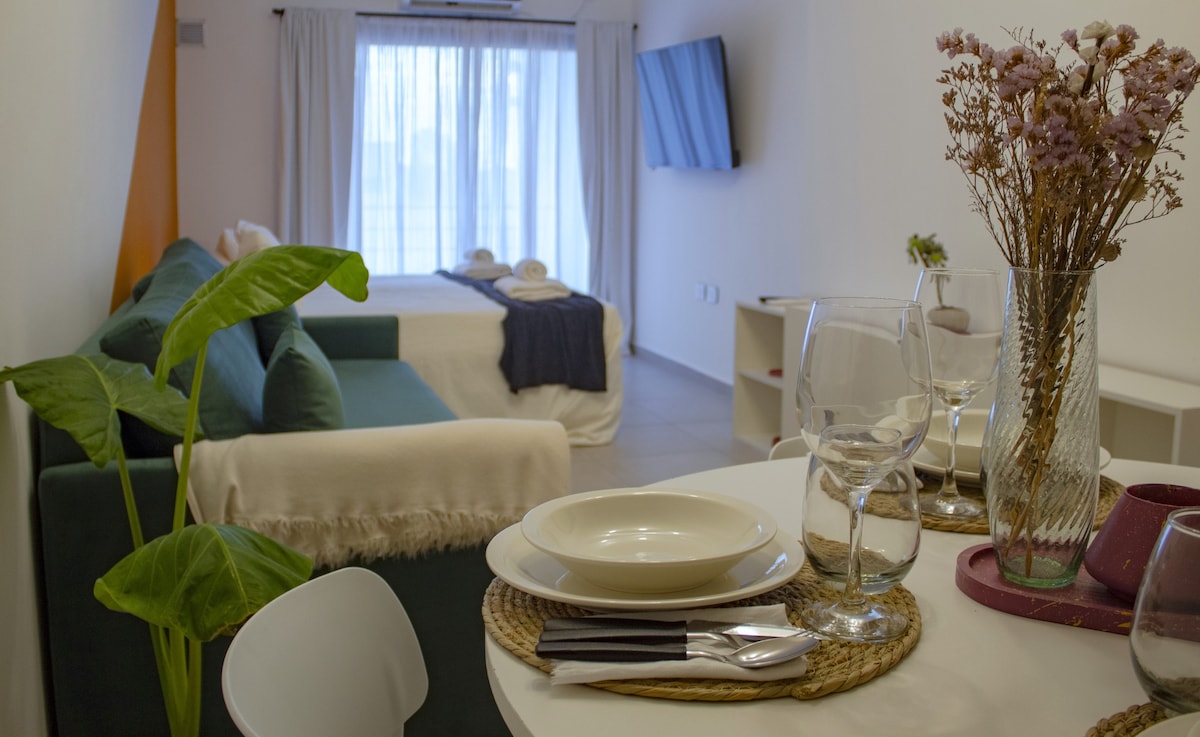 도심에 위치한 전용 스튜디오 아파트로 매우 밝고 시설이 완비되어 있습니다! 수건, 침구, 메모리폼 베개, 커피메이커, 전기 스토브, 현대적인 가전제품, 업무 공간, 초고속 와이파이, 43인치 스마트 TV, 새 매트리스와 박스 스프링, 보드가 있는 다리미, 헤어드라이어, 수납 공간, 수제 도자기 접시와 집에서 요리할 수 있는 식기. 모든 디테일이 세심하게 꾸며져 독특한 경험을 선사합니다.