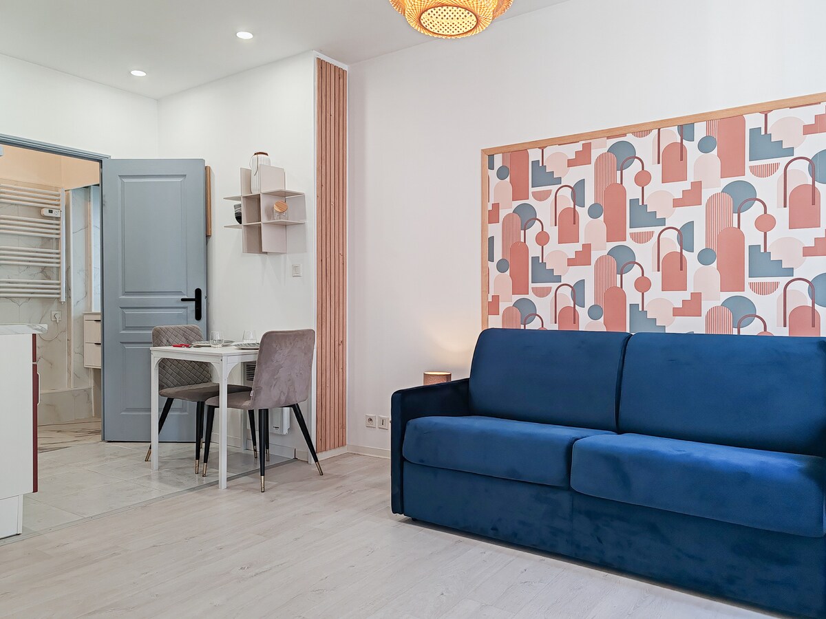 새롭고 우아하며 이상적인 위치에 있는 숙소를 즐기세요. 이 리모델링된 T2는 침실, 거실/식당, 주방, 화장실이 있는 욕실로 구성되어 있습니다. 대성당에서 도보로 15분, 경기장에서 5분 거리에 있어 편의 시설을 모두 이용하실 수 있습니다. 출장자나 휴가객 모두 전용 출입구와 무료 주차장을 이용할 수 있습니다. 요청 시: - 폐쇄형 차고에 2륜 차량을 보관할 수 있습니다. - 두 번째 침대 설치 및 준비(별도의 침대 2개인 경우).