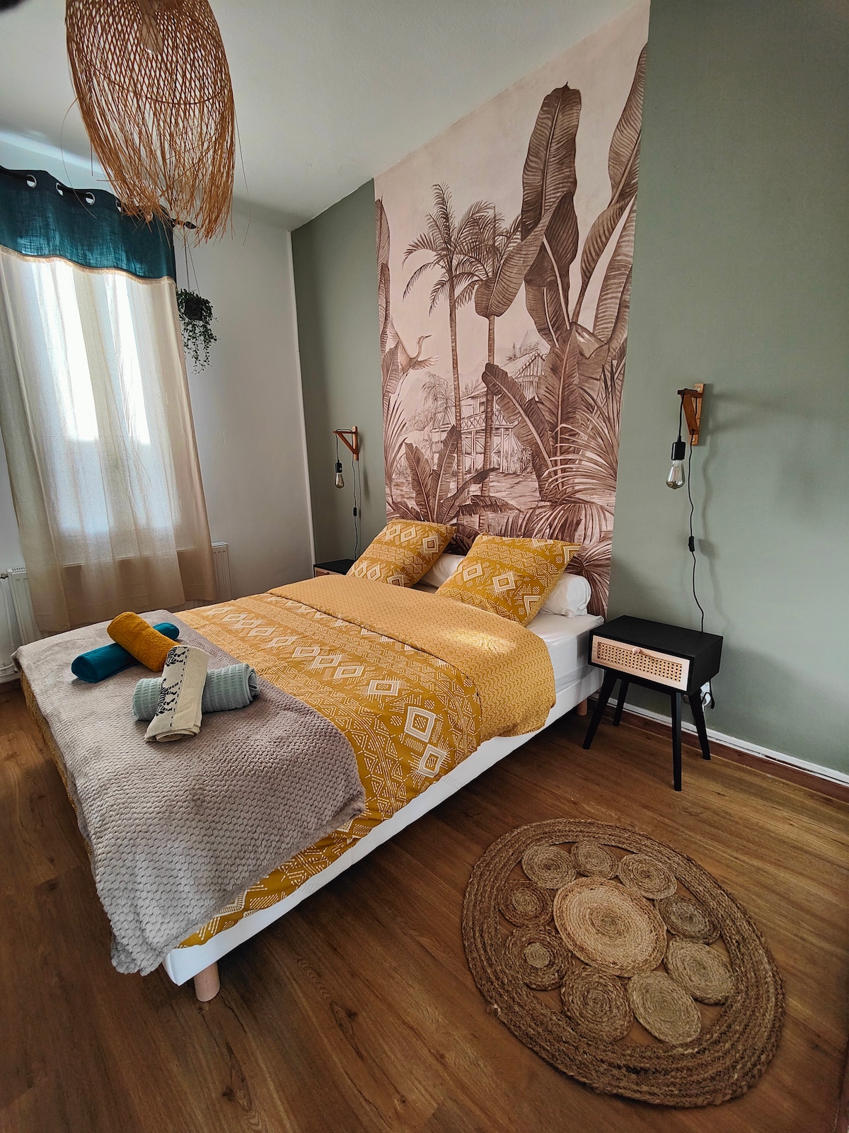 Profitez d'un logement รฉlรฉgant et central face aux Halles de Bรฉziers, รฉlues "plus beau marchรฉ de France 2025". Cet appartement de deux pieces principales est climatisรฉ et se trouve au troisiรจme รฉtage. La chambre principale avec un lit en 160x200 est au calme. Un canapรฉ lit dans une piรจce sรฉparรฉe permet d'accueillir une ร deux personnes supplรฉmentaires. Ce logement nโest pas adaptรฉ aux personnes ร mobilitรฉ rรฉduite.