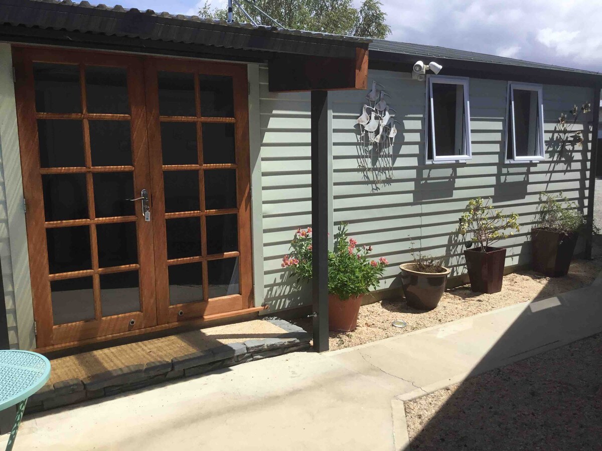 별도의 간이 주방과 욕실을 포함한 햇살이 가득한 독립형 객실로 공용 데크와 정원을 이용할 수 있습니다. 전용 출입구, 싱글 침대 2개 및 무료 노상 주차. 추가 청소비 없음. 저는 개인적으로 모든 표면을 꼼꼼히 청소하고 소독하지만, 사용한 물건을 깨끗이 닦고 건조시킨 후 원래 있던 곳에 두시기 바랍니다. 마이웨이 버스를 예약하면 가까이 픽업해 주거나 시내 중심지까지 도보로 25~30분, 차로 5분 거리에 있습니다. 슈퍼마켓 도보 10분.