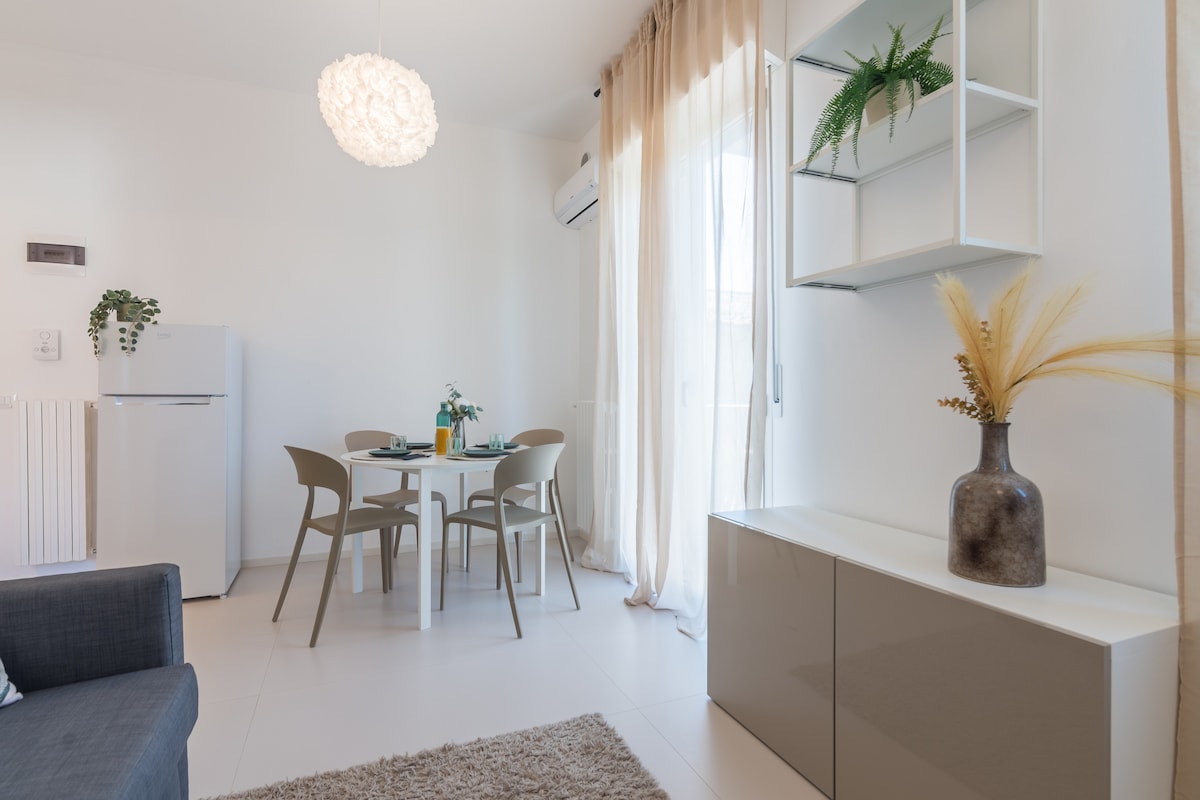 메트로폴 체카리니 스위트의 편안한 아파트에는 주방, 거실, 냉장고, 식기 세척기, 세탁기, 전자레인지, 더블 침실, 샤워기가 있는 욕실이 있습니다. 이 아파트에는 모든 객실에 에어컨/난방, 와이파이, LED TV가 구비되어 있습니다. 숙소는 리치오네 중심부에 위치하고 있으며, 비알레 체카리니와 팔라초 데이 콩그레시에서 몇 걸음 거리에 있습니다. 주차장은 몇 미터 거리에 있습니다. 2~4명 숙박 가능. 약 40/45평방미터.