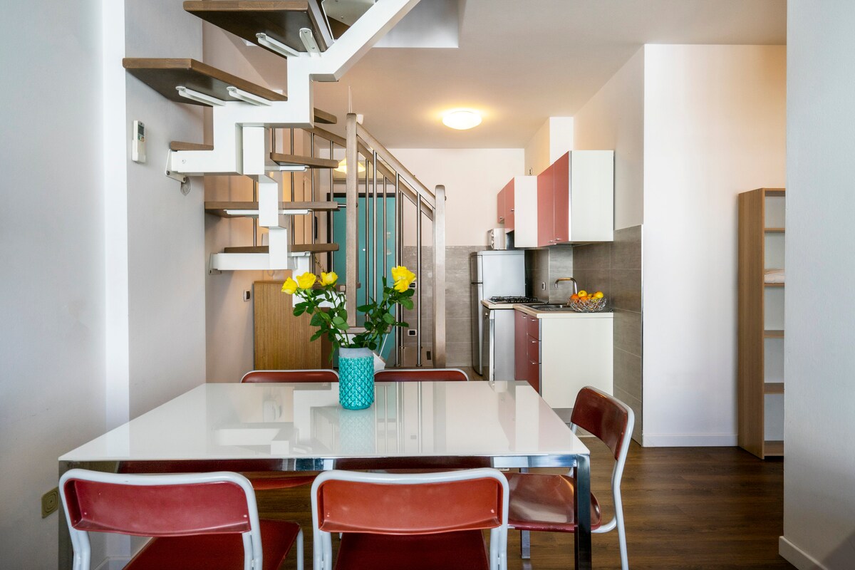 스마트 아파트는 해변에서 불과 30미터 떨어진 보드워크와 평행한 거리의 중앙 위치에 있습니다. 나이가 많은 어린이 가족에게 이상적입니다. 작거나 나이가 많은 아이나 계단 마련이 어려운 분들에게는 추천하지 않습니다 조용한 분들도 괜찮습니다. 파티는 금지입니다. 밤 늦게까지 영업하는 펍, 레스토랑, 피자 가게, 슈퍼마켓이 있습니다.