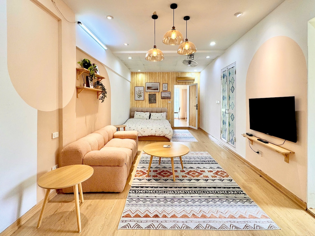 거실에 두 번째 침대가 있는 전용 1BR 아파트, 대형 창문, 상징적인 세라믹 로드를 내려다볼 수 있는 넓은 발코니 2개. 주요 관광지 근처의 최적의 위치: - 호안 끼엠 호수 300m(수상 인형극장, 응옥썬 사당, 하노이 우체국, 노트 커피 등) -타히엔 비어 스트리트 600m — 하노이 나이트라이프의 활기찬 허브로 길거리 음식, 맥주, 현지 분위기로 유명합니다. -오페라하우스 900m 공항 교통편 및 투어 예약 가능: 닌빈, 사파, 하장, 하롱...