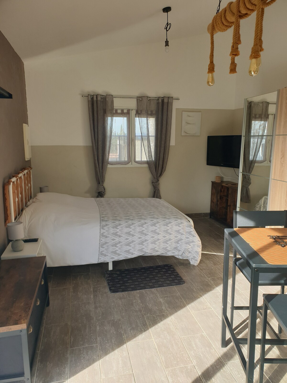 Accommodation located in a quiet residential area just five minutes from Carcassonne. Our cozy retreat can accommodate one to four guests in a peaceful setting. It features a private entrance, a private terrace, and free, secure parking visible directly from the accommodation, offering real peace of mind. Comfortably equipped, it provides a warm and functional atmosphere, ideal for a tourist, business, or relaxing stay.