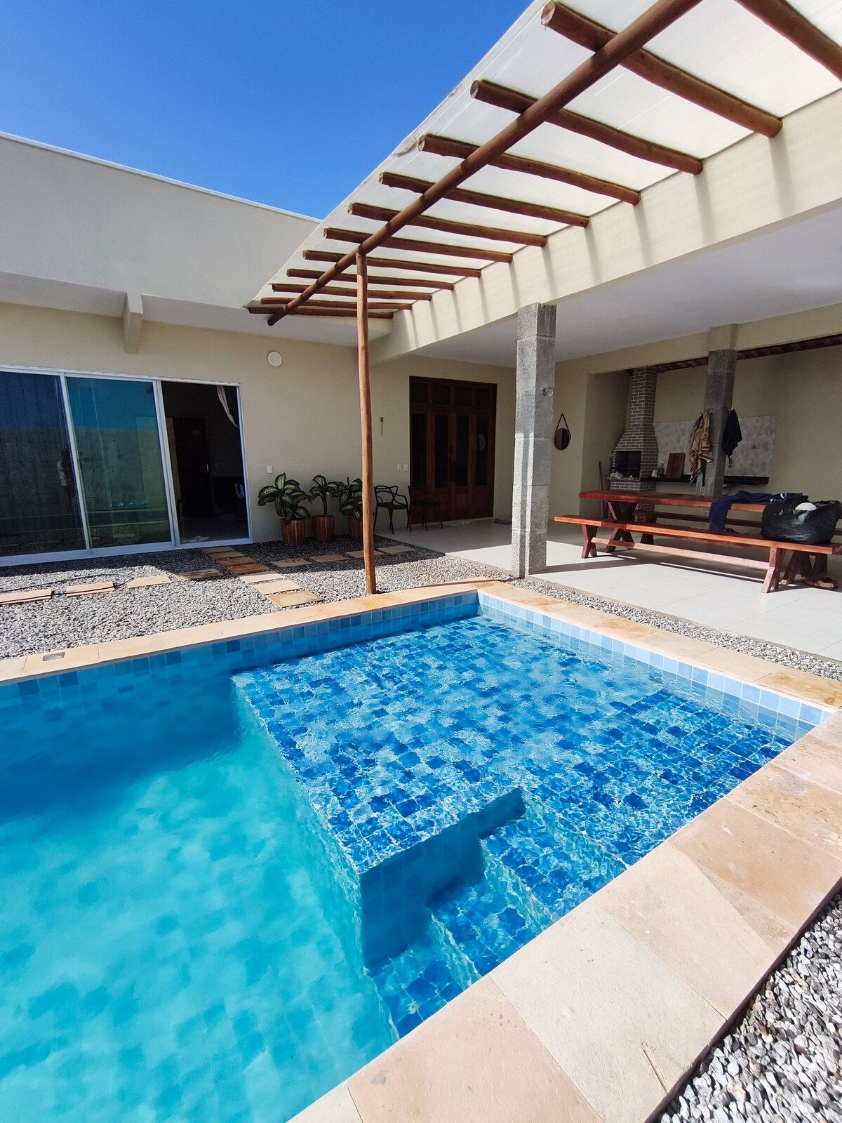 Newly remodeled beachfront guest house on a pristine 1-acre property at Caponga Beach, just 50 minutes from Fortaleza. Enjoy ocean views, pool, garden, and outdoor dining area, ideal for relaxing with family or friends. Peaceful beaches and multiple rental units make it perfect for couples, groups, or retreats, with space to host up to 22 guests in a memorable coastal setting