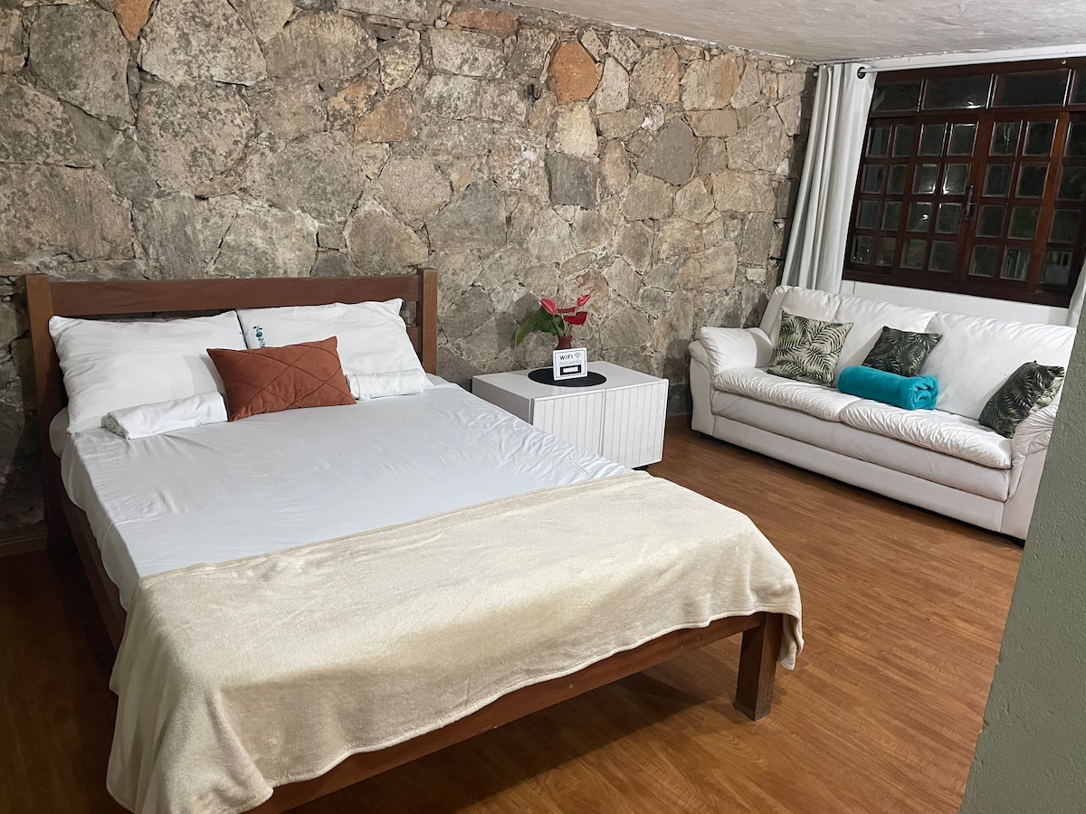Abrace a simplicidade neste lugar tranquilo e bem-localizado, duas camas de casal , cozinha toda equipada, banheiro e mesa de jantar. Um bom lugar para caminhar e descansar