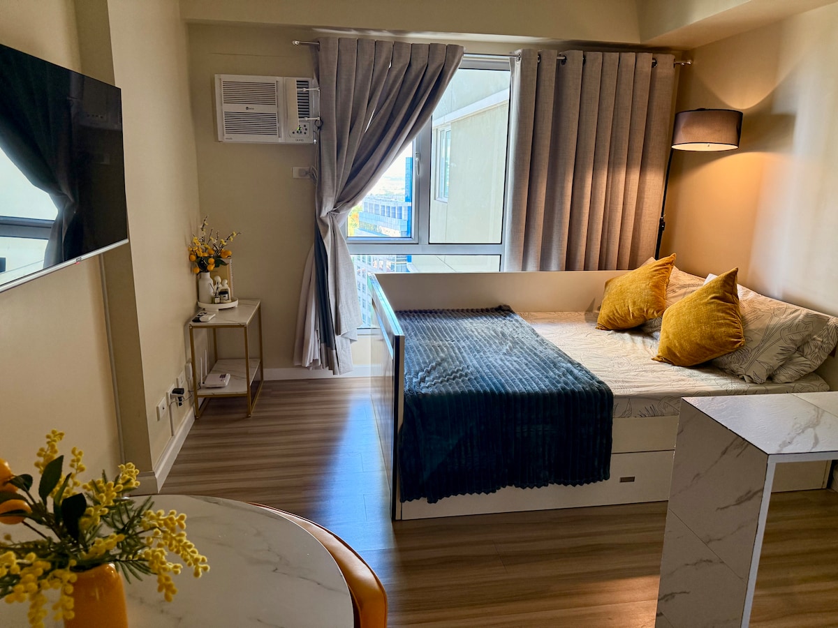 NEW condominium at IT PARK CEBU. GOOD environment with Swimming Pool, safety place Near famous restaurants, casino *Free Parking inside condo (please ask us availability) *Free faster WIFI (60MB/S), shampoo & soap, tissue *Blind & Black out curtain ์ธ๋ถ ์์ดํฐํํฌ์ ์์นํ ๋ด์ฝ๋๋ฏธ๋์ ์ ๋๋ค. ์คํ๋์ค ํ์ ์ด๋ฉฐ ๋๋ธ์ฌ์ด์ฆ ๋ฒ ๋, ์์ด์ปจ, ํฐ๋น, ์ผ๋น๋ท, ์ฑ ์, ์ค๋งํฌ,๋์ฅ๊ณ , ์ ์๋ ์ง ๋ฑ ๋ชจ๋ ๊ฒ์ด ๊ฐ์ถฐ์ ธ ์์ต๋๋ค. ์์์ฅ ํฌํจ, ์์ฒด๊ฒฝ๋น ์์คํ ์ผ๋ก ์น์์ด ์ข์ผ๋ฉฐ , ๊ฑธ์ด์ ์ํฐํ๋ก ํธ ์นด์ง๋ ธ, ํ๋์ฐจ์ด์ฆ ์๋น, ํ, ๋ฐ, ์ํ, ์นดํ, ํธ์์ ์ด์ฉ๊ฐ๋ฅ ํฉ๋๋ค . ์์๋ผ ์ผํธ๋ด ์์ดํฐํํฌ ์ง์ ๊น์ง ๊ฑธ์ด์ 3๋ถ, SM๋ชฐ / ์์๋ผ ์ธ๋ถ๋ชฐ๊น์ง 15๋ถ,๋งํ ๊ณตํญ 35๋ถ์์ 50๋ถ ๊ฑฐ๋ฆฌ์ ๋๋ค.