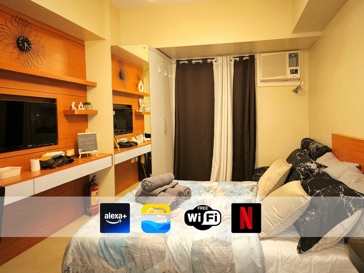 - IT 파크 중심부에 새로 리모델링한 깨끗하고 아늑하며 고급스러운 콘도 숙소 - 최대 4명의 게스트를 수용할 수 있습니다. - 500Mbps 초고속 인터넷 연결을 즐겨보세요. - 넷플릭스, 디즈니+, 아마존 비디오, 유튜브 등을 볼 수 있는 50인치 4K 스마트 TV - 주방 시설 완비 및 전자 세탁기 - 세 개의 수영장에서 휴식을 취해보세요. - 아얄라 몰과 숙보 메르카도까지 도보 거리 - 숙소에서 몇 걸음 거리에 다양한 현지 및 해외 레스토랑, 커피숍, 바, 편의점이 있습니다.
