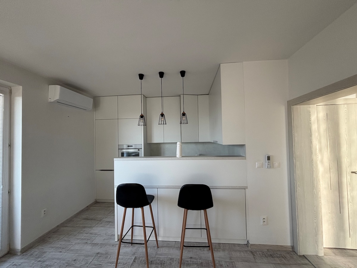 Your new stylish apartment offers comfort stay for up to 2 persons. It is located in a new estate just minutes within downtown. Place is fully furnished (kitchen appliances, wi-fi, Antik Smart TV, etc.) and is ready for your stay. Free parking is provided in designated underground space. Safety of the property and guests is provided by private security company.